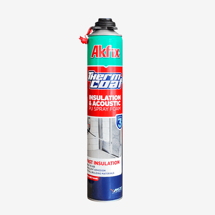 Akfix TC-930 ThermCoat Thermal and Acoustic Insulation PC Spray Foam is a PU Foam for top-quality heat and sound insulation in buildings and houses. Provides a unique, monolithic thermal insulation application without junctures, seams, and gaps. An innovative alternative to traditional building insulation methods such as polystyrene heat insulation boards, glass wool, and rock wool. Single-component product used with an applicator gun. It does not contain any propellant gases which are harmful to the ozone layer.